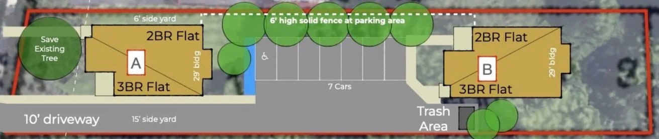 - The property will not be “mowed down” – most trees will be preserved, including a 15” buffer between the driveway and Memorial park.
